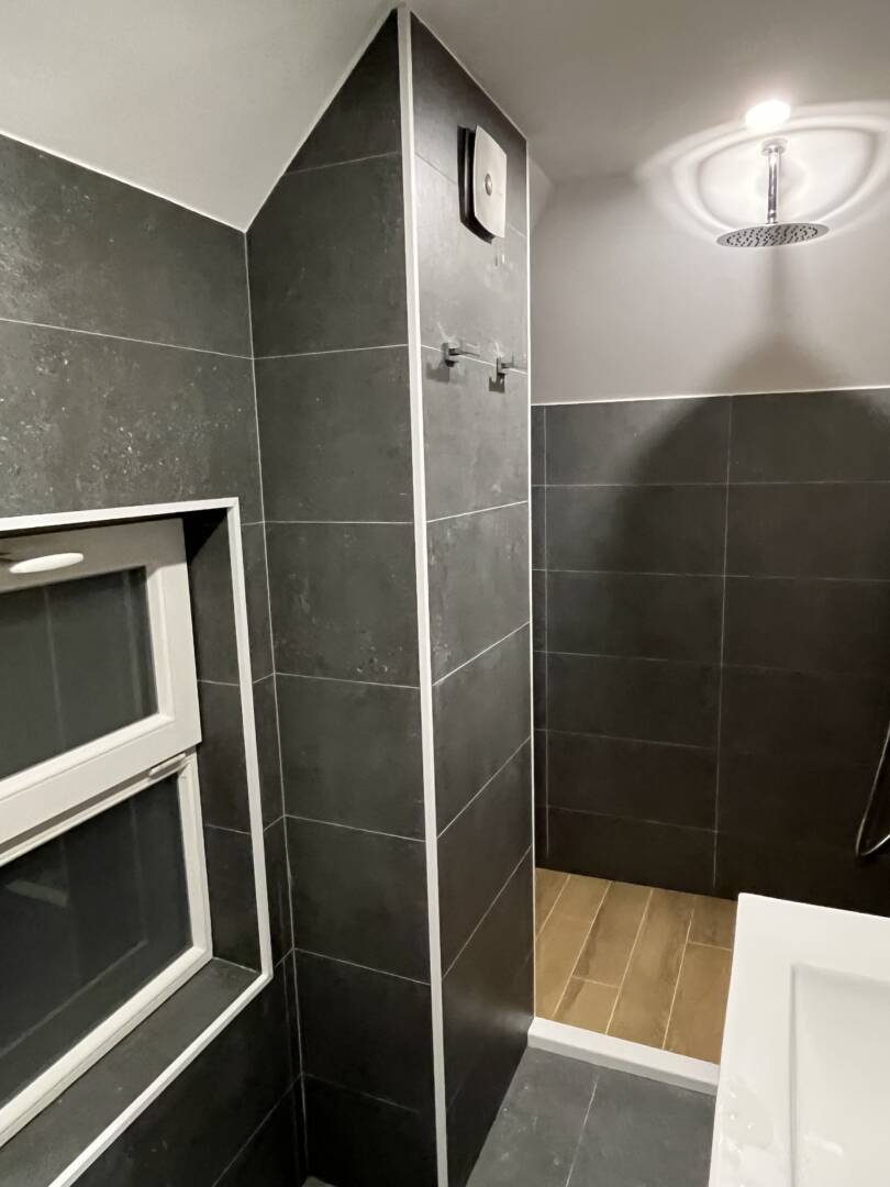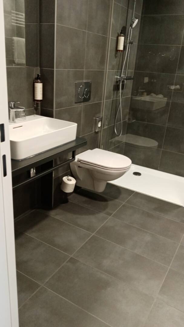 Демонтаж на санитарно оборудване и плочки, полагане на хидроизолация, монтаж на вградена душ система и структура за тоалетна...